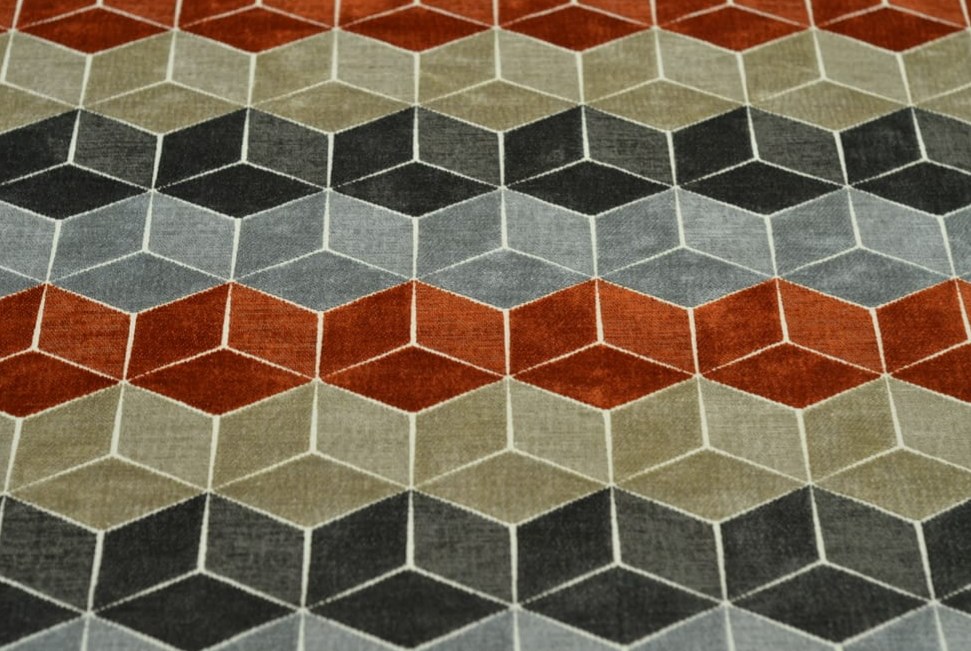 Это мебельно — декоративная ткань, шенилл. Дизайнерская геометрическая коллекция в потрясающей колористике. Широко используется в современных интерьерах : в мягкой мебели, в портьерах, подушках, покрывалах и других декоративных деталях.