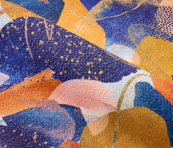 А эффект многослойности принта, придает глубину и разнообразие фактуре ткани, что делает ее выразительной не только наощупь, но и визуально. Этот жаккард идеально подходит для создания малых форм мебели — пуфов, кушеток, кресел, а также декоративных подушек.