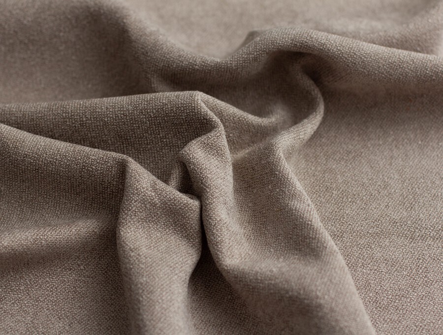 Фактура этого материала буквально усыпана узелками букле, которые, как крошечные жемчужинки, мягко отражают свет. При этом на ощупь материал очень бархатистый, после прикосновения к поверхности ощущается по-настоящему шенилловая мягкость.