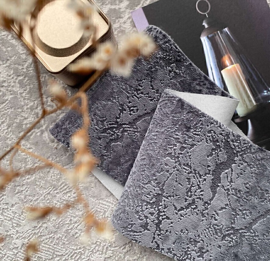 Смешанная высота ворса подчеркивает рельефную считываемость рисунка, а благодаря подложке Pongee в каждом касании поверхность отзывается ощущением мягкости и комфорта.