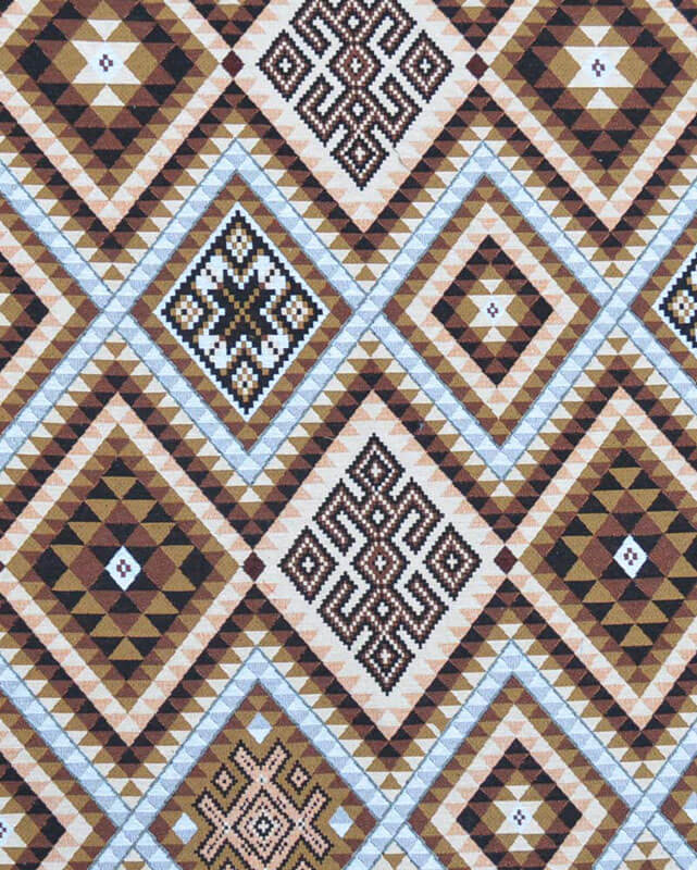 Этнический гобелен Символ выполнен в бежево - коричневой цветовой гамме, с элементами голубого цвета, что отсылает нас к естественным природным стихиям, гармонично существующим в тесном соседстве.