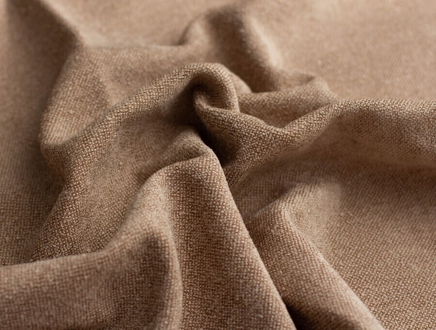 Фактура этого материала буквально усыпана узелками букле, которые, как крошечные жемчужинки, мягко отражают свет. При этом на ощупь материал очень бархатистый, после прикосновения к поверхности ощущается по-настоящему шенилловая мягкость.