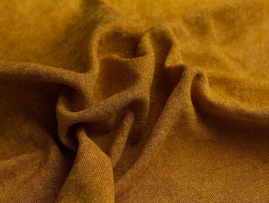 Фактура этого материала буквально усыпана узелками букле, которые, как крошечные жемчужинки, мягко отражают свет. При этом на ощупь материал очень бархатистый, после прикосновения к поверхности ощущается по-настоящему шенилловая мягкость.