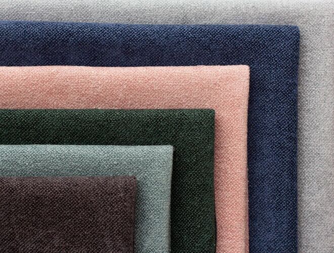Фактура этого материала буквально усыпана узелками букле, которые, как крошечные жемчужинки, мягко отражают свет. При этом на ощупь материал очень бархатистый, после прикосновения к поверхности ощущается по-настоящему шенилловая мягкость.
