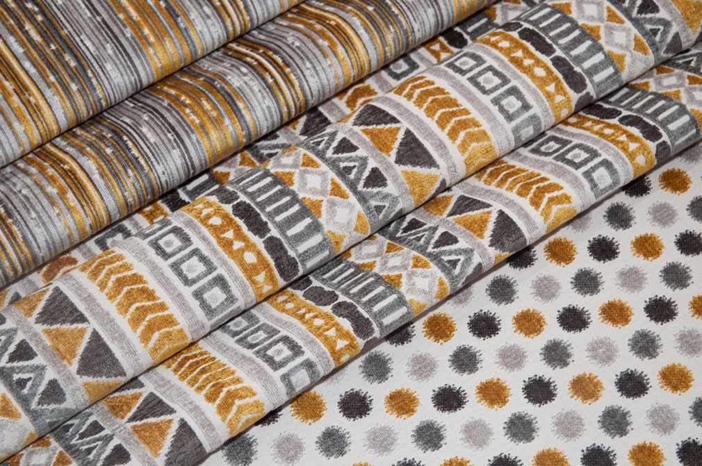 Ontario (Онтарио) – коллекция шениллов в этническом стиле. Дизайн с широкой и узкой полосой комбинируется с рисунком в крупный горох. Необычное сочетание этно-мотивов и легендарной классики.